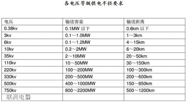 供電電壓400V(即常用低壓配電變壓器輸出電壓),采用架空線路時,供電功率100kW以內(nèi),供電距離250m,即供電半徑250m;若采用電纜線路時,供電功率175kW以內(nèi),供電距離350m,即供電半徑350m。