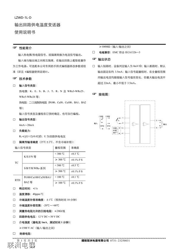 LZWD-1L-DL輸出回路供電溫度變送器使用說明書