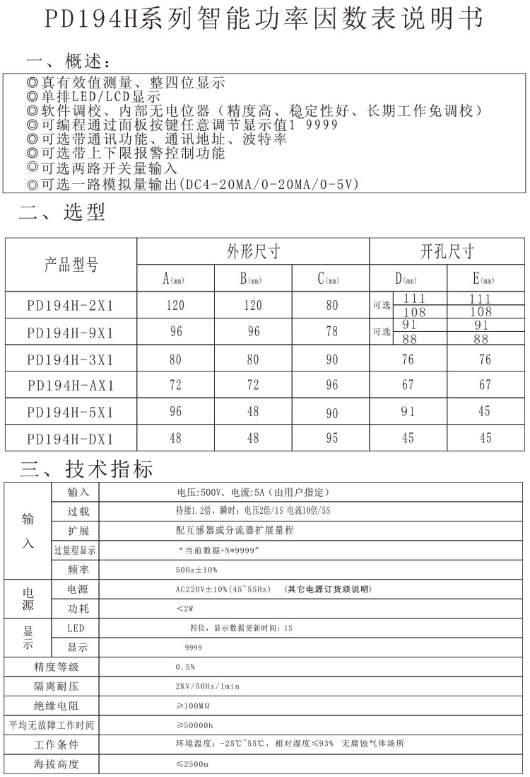 PD194H-9X1、PD194H-5X1單相功率因數(shù)表 數(shù)顯功率因數(shù)表