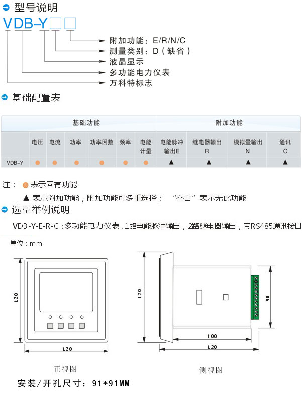 VDB系列電力儀表選型說明: